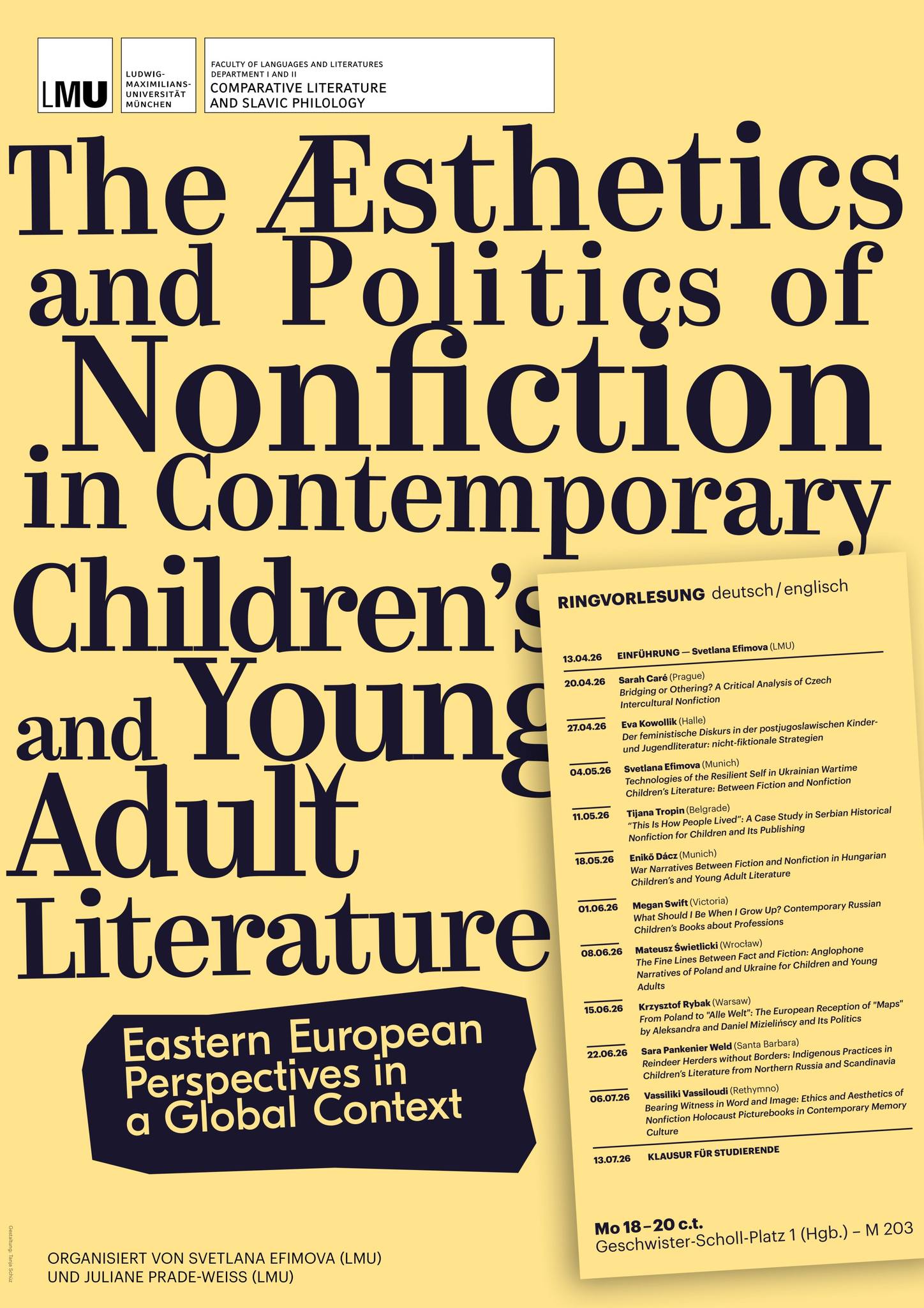Im Rahmen der Ringvorlesung „The Aesthetics and Politics of Nonfiction in Contemporary Children’s and Young Adult Literature: Eastern European Perspectives in a Global Context”
